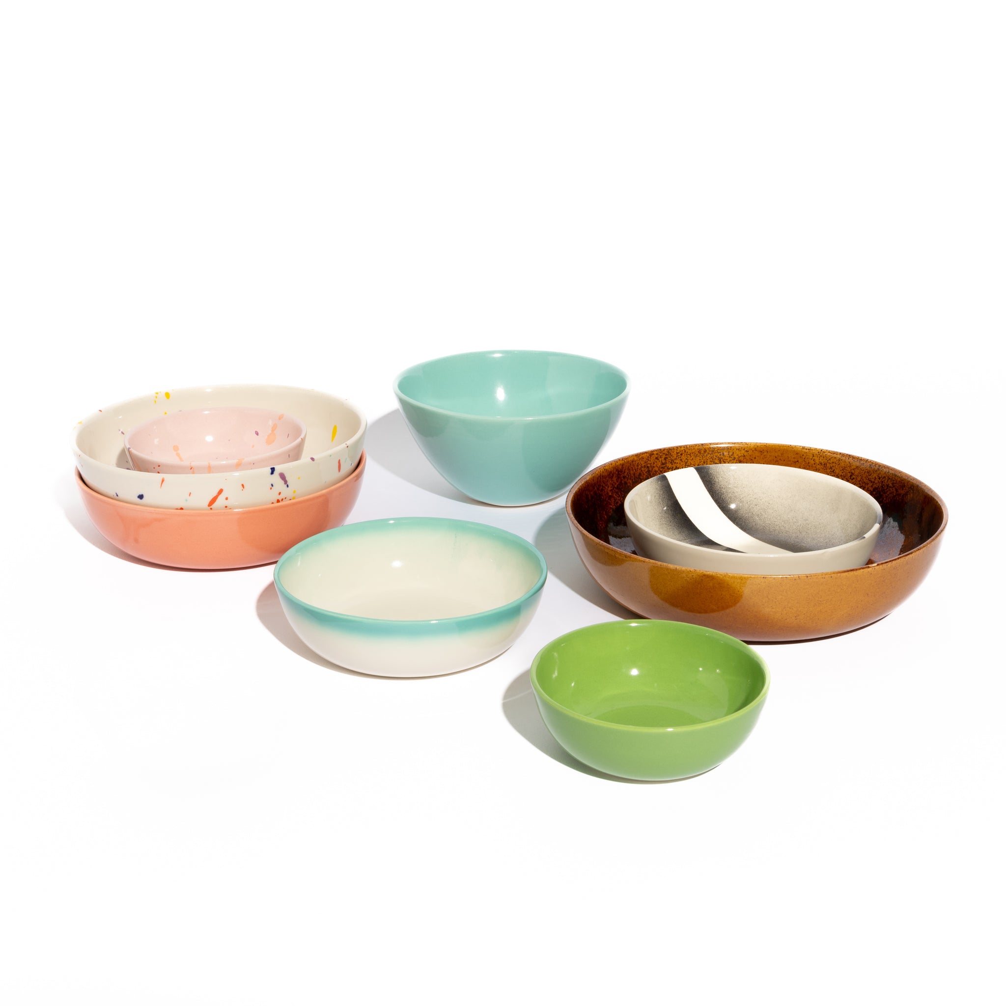 A hand-picked assortment of unique bowls. Each bowl is either of ‘seconds’ quality, a discontinued design, or an experiment from our glaze lab. Seconds are pieces that didn’t pass our high quality control standards and have very minor imperfections.