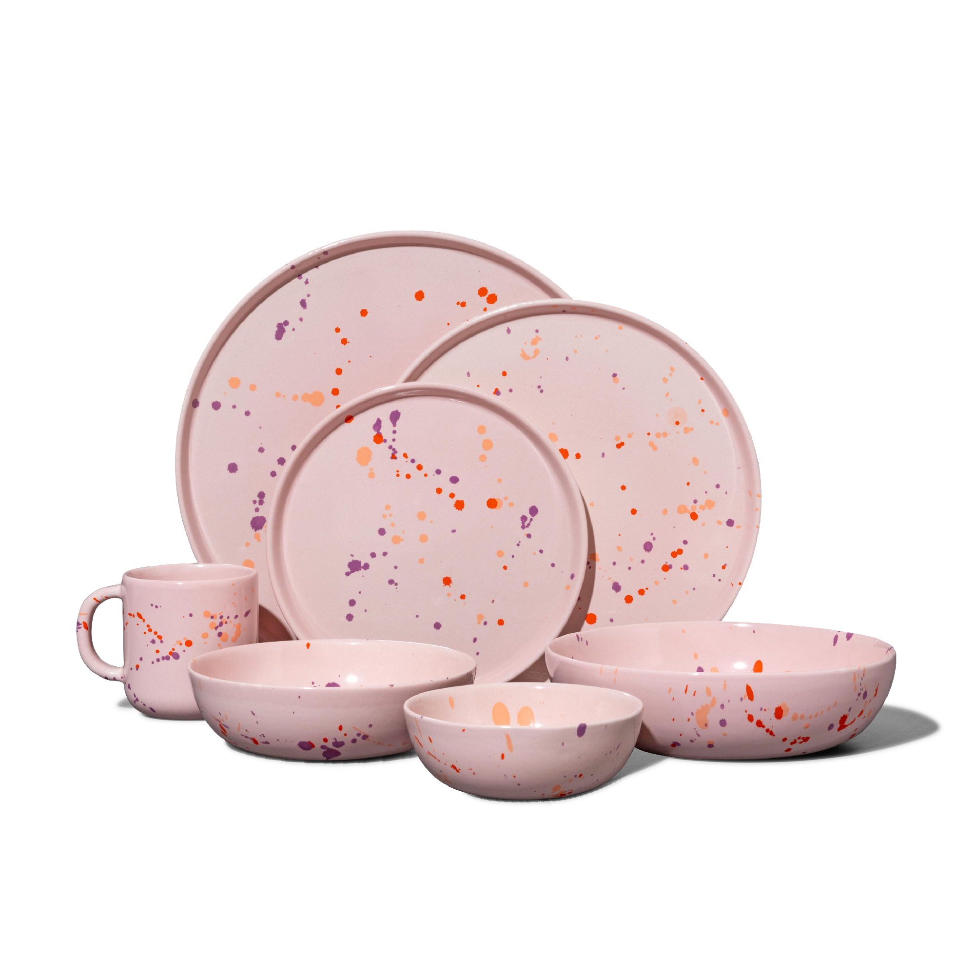 A suite of wares for the true entertainer. Invite the whole family over with this set. Includes Dinner Plate + Everyday Plate + Snack Plate + Entree Bowl + Soup Bowl + Dessert Bowl + Coffee Mug.